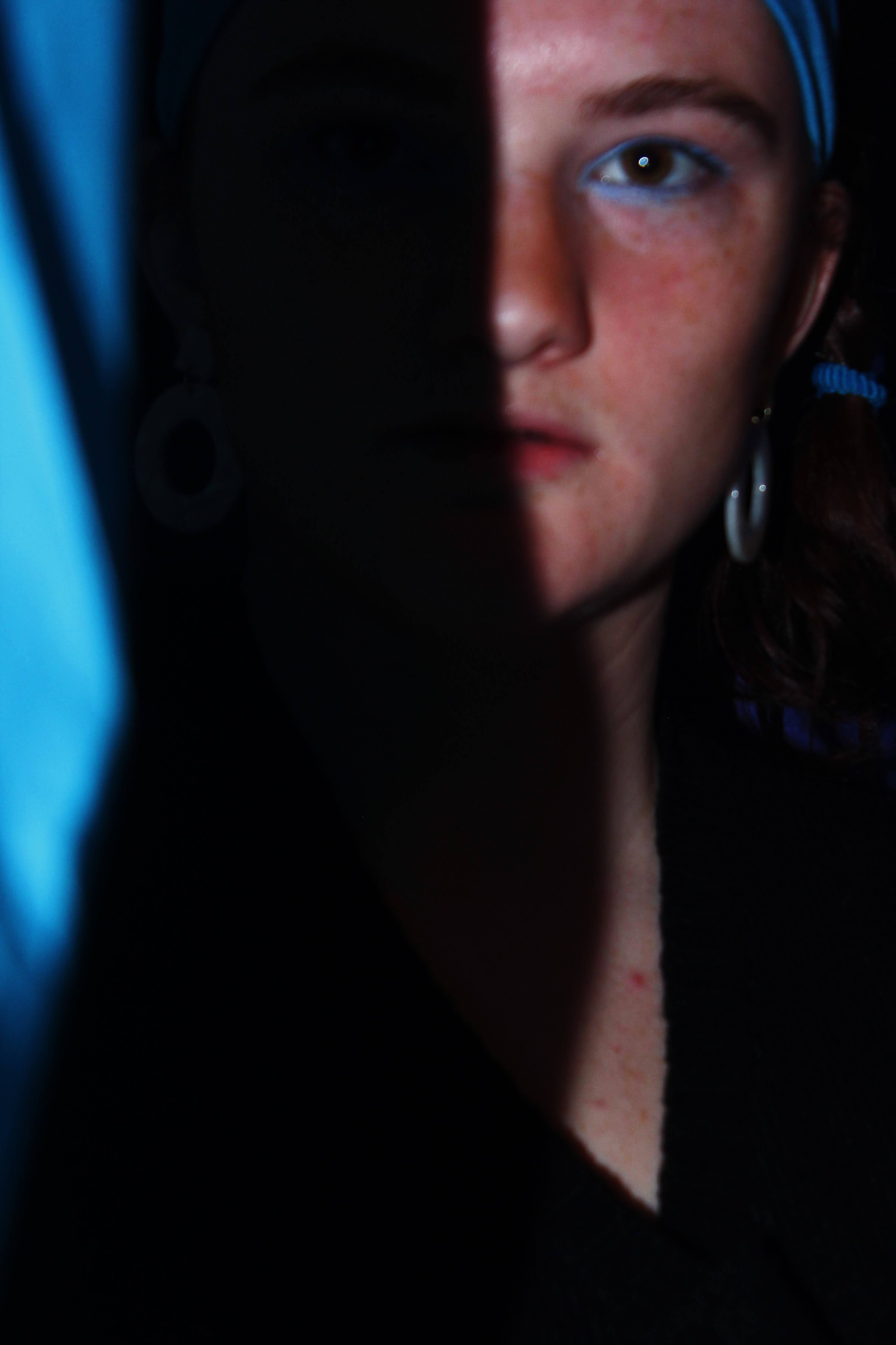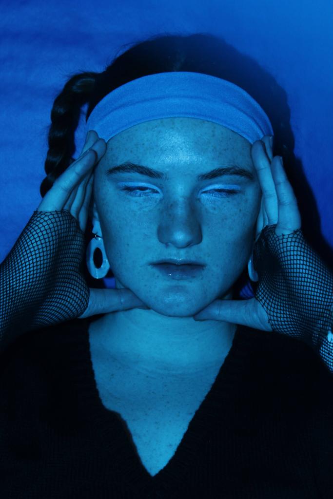 The last type of photo I had to edit were the ones with blue lighting. I achieved the blue lighting by overlaying my flash with some blue tissue paper, a complete accident at first. I loved the effect and decided to take some actual pictures with the blue lighting, but it definitely required some different edits. The left image is the original, and the right is the final edited version.