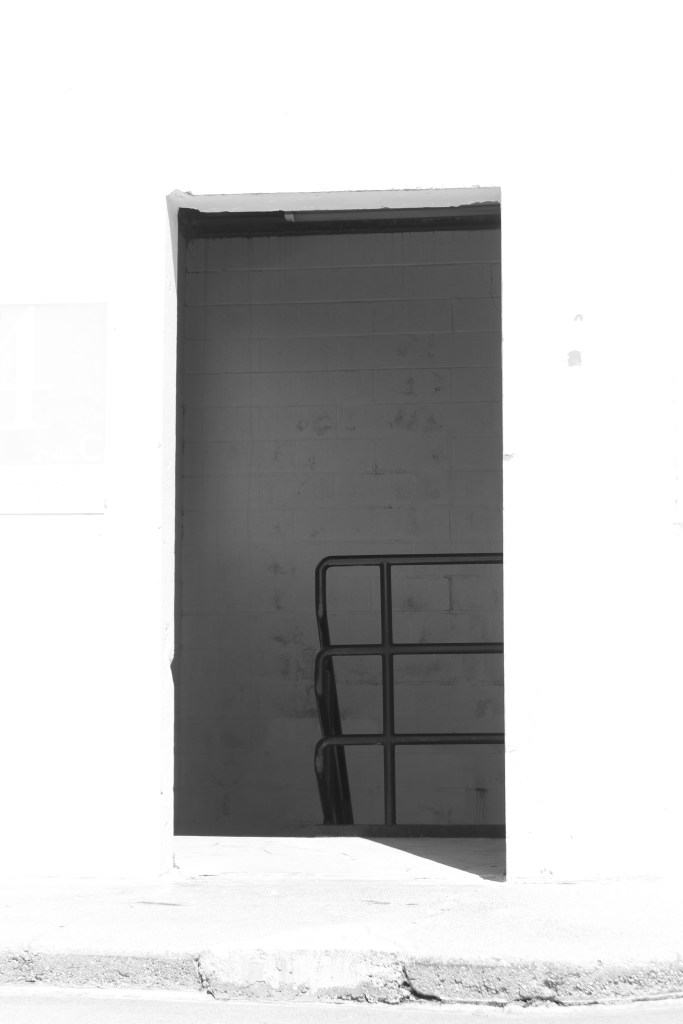 My first thought when considering lighting and where might offer some interesting shadows was, you guessed it, the mall parking lot near my home. It should come to no surprise to anyone who has read my previous blogposts that I love mall parking lots for their convenience and range of use in photography. It did take me a while to adjust shooting in black and white, as you have to consider contrast in a different (mind the pun) light, but I adjusted pretty quickly and was able to start recognizing when a shot would come out good before I even took it. In fact, most of my favorites from the day were those initial pictures I took at the parking lot. One of my favorites, included below, actually played up the whitewashed effect caused by the direct sunlight and black and white mode I was shooting in.